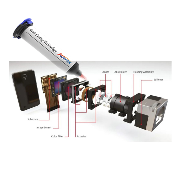 眾所周知,鏡頭是用光學(xué)玻璃粘接組合而成,廣泛應用于單反相機等高端攝影設備以及掃描儀器設備中。在鏡頭生產(chǎn)制造中,不僅組裝工藝要求嚴格,對于玻璃鏡片和鏡頭殼體粘接的UV膠水也有很高要求。AVENTK作為UV膠水廠(chǎng)家,在攝像模組用膠方面有著(zhù)一系列成熟產(chǎn)品,覆蓋用膠點(diǎn)包括螺紋定焦、支架膠、焊點(diǎn)保護膠、CCM底座、FPC補強膠、粘塵膠、捕塵膠、黑色壓環(huán)膠、VCM彈片粘接膠、IR片粘接等。