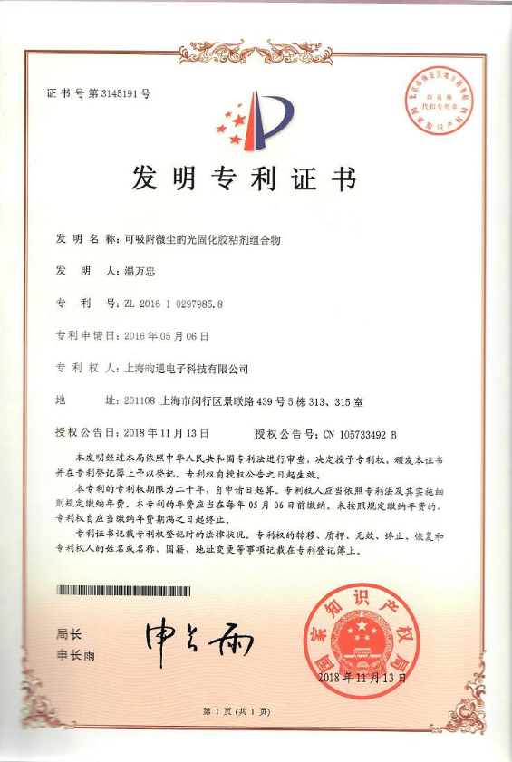 可吸附微塵的光固化膠粘劑組合物發(fā)明專(zhuān)利